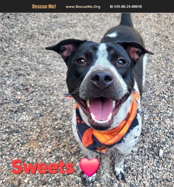 Please help me live! Mcacc Shelter given me a deadline due to kennel stress. I have done nothing wrong so I hope you come and meet me before my deadline! LOCATED: 1920 S Lewis Dr. Mesa Az Fill out: https://www.thedogsavers.org/apply-to-adopt/ Call: 480-331-4188 SWEETS #A5146477 I'm a 1yr old 48lb Spayed-Female, White/Black Terrier mix. Found as stray. I'm not a fan of all the loud barking but once away I will lean in for love and belly rubs with my wiggly happy self. I'm playful, love chillin in the pool and will jump in your lap for affection. I'm a sweet, timid, lovable girl but required no children, they make me nervous. I'm very attentive to my person. Can you believe they want to end my life? Please come meet me and take me home. Sweets does have a no children requirement to be adopted.