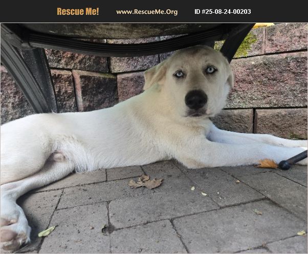 I picked him up running down a country road and tried to find her human. He was picked up with another dog (likely his mother) who is microchipped but the owner refused to answer the phone or return messages. I don't have the time, space, or expertise to train him. He is very sweet. He is good with everyone but will chase the cats. He is not aggressive or bitey. We are still working on housebreaking. He is very person oriented and will likely be easy to train bbut its hard with two dogs. He will walk on a leash but pulls and knows other basic commands. He is 6 months and is over 50 pounds. He will likely be a big dog who wants to lay at your feet unless you have food. He very energetic and I would like to be allowed to her my daughter visit. The adoption fee is just to cover the vet bill, vaccinations, flea and tick meds, food, collar, and leashes.