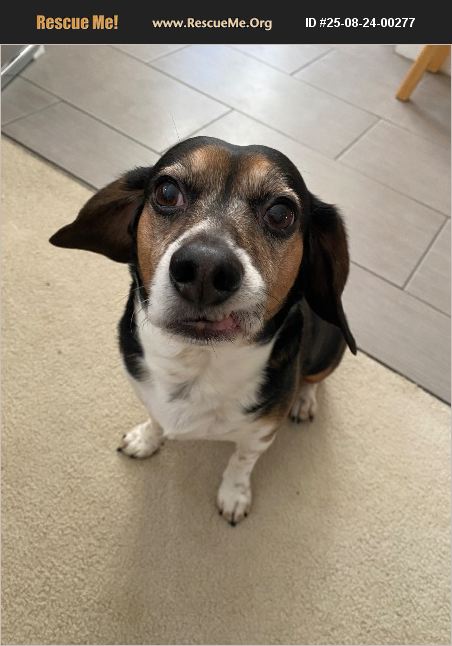 My name is Siglo- I am a 13 year young spunky & sweet guy. I have lots of character in this little body! Long walks and lots of sniffs are my forte. I am relatively quiet for a beagle and only do the classic beagle bellow when playing! I LOVE to play tug-of-war with any stuffed animal! I am house trained and very good at letting my humans know if I have to go potty! I will insist on lots of cuddles right up against my humans! Burrowing into fuzzy blankets is my favorite. I will curl up right at your feet every night. I get along with kitties very well but would prefer to have another doggy friend who matches my energy when playing. I am very socialized- my previous owner boarded me a lot so I know how to play kindly. My vet recommended I get some teeth pulled due to periodontal disease but I am otherwise very healthy & full of life (-: I would love to be adopted by a family that has room for me to sniff & roam as I please & has another doggy friend for me to bond with (3 My parents need to move and are expecting their first baby so caring proving me with the dental care I need is hard for them right now.