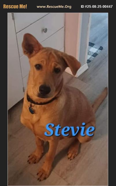 Stevie is a young, fun, energetic dog who loves his people. He would do best with a family who would take him hiking or out for exercise often as his behavior is at its best when he has had exercise. He gets along well with other dogs and loves to play. He is reliably potty trained and overall a very good boy. We think he is 7-8 months. Because of his size, he will need a fenced yard in his forever home. He is neutered, fully vaccinated and microchipped. Message us if you want more information on our loveable boy Stevie