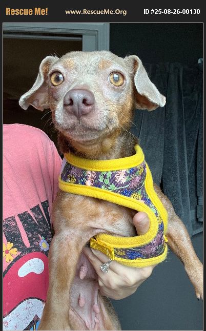 Meet Jessica! She is an adorable and sweet chiweenie, 3 years old. She is an active girl and loves to meet new people. Jessica is great with kids, cats and dogs. She is pad trained and pretty good in a crate. Jessica will be spayed, microchipped, and fully vaccinated 08-29-25 and if she is adopted prior to her appointment, her adopter MUST bring het to her spay appointment, no exceptions. option fee and contract required.
