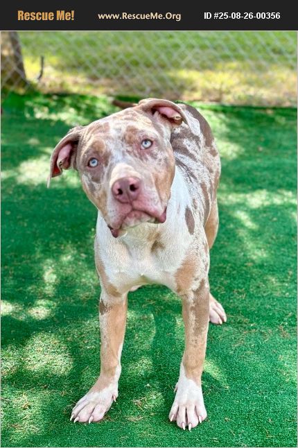 Stunning is the word that comes to mind when you see Jack! Jack is a gorgeous pittie mix, just under a year old and about 55 pounds. Jack is a little unsure of the world around him but is oh so sweet and friendly!! He has a wonderful temperament and is very trusting of humans. With continued socialization he will gain confidence quickly. He will need some basic training, but he loves treats and seems to be eager to please. Jack appears to be dog friendly too. Jack is enjoying all the love and attention he is getting from our volunteers but he deserves a home of his own. Jack is microchipped and up to date on vaccines. He will be neutered upon adoption. If you'd like to meet this Merle beauty, please fill out an application on our website at rescueridge.com . If your application is a possible match, a volunteer will reach out to you to schedule a meet. Please, no inquiries without an adoption application.