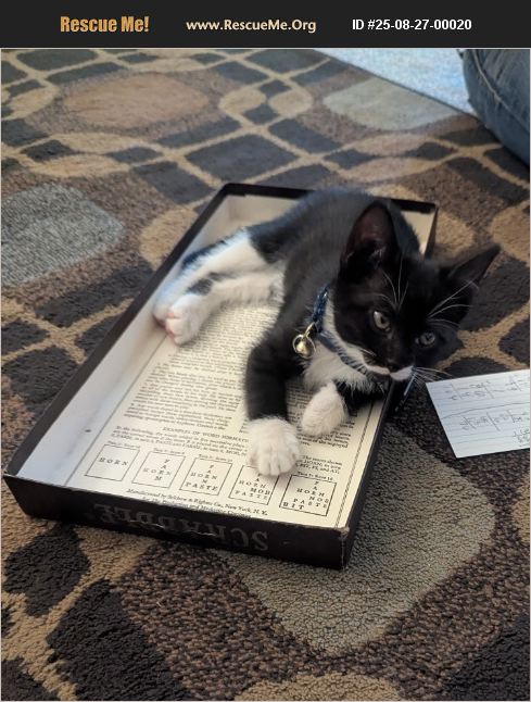 Tuxedo kitten, 12 weeks old, shy, cuddly, loving, loves to play, sleeps a lot