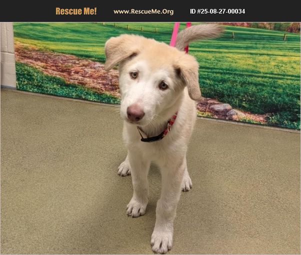 ID#A545682 I am described as a male, cream and white Siberian Husky mix. The shelter thinks I am about 13 weeks old. I weigh approximately 19.20 lbs. I have been at the shelter since Aug 26, 2025 and I may be available for adoption on Sep 03, 2025 at 10:00AM.