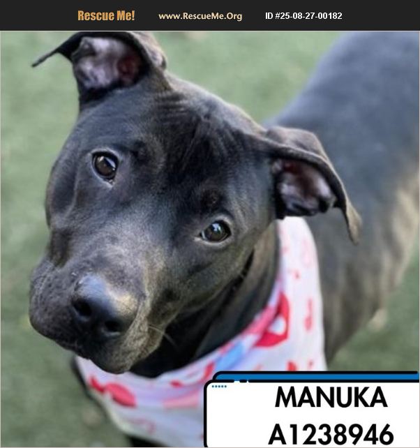 Transport help may be available! This sweet, snuggly pup needs an adopter or rescue commitment by 5PM on Sunday, 8/31/25. Manuka is struggling with kennel stress and, sadly, is not available for foster at this time. Manuka is the best of both worlds, playful and affectionate! She loves open spaces where she can run, play, and explore, but she's just as happy to curl up in a big cozy bed and cuddle with her people. �Ϭ What Makes Manuka Special: ��%90%BE Crate trained & mostly housebroken ��%90%BE Knows sit, stay, come, lay down & more ��%90%BE Walks well on leash (slight pulling at times) ��%90%BE Good with cats after slow intros ��%90%BE Loves toys, treats & snuggle time ��%90%BE Would thrive in an active home with a yard Manuka is ready for someone who can give her patience, love, and the space to shine.
