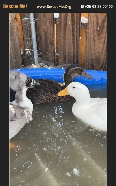 Three young ducks raised together. Father broke back and having a hard time keeping up with them.