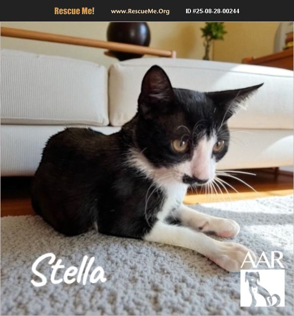 Stella is a fun little female kitten with a moustache, and how can you resist that face? She is playful, cuddly and likes people. Come meet her!