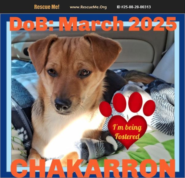 Meet CHAKARRON! Chakarron was saved from a high-kill shelter in Calfornia and arrived at Give a Dog a Home Rescue in Sebec, Maine on Saturday 19 July. We post our available dogs in states across the East Coast and Canada to reach as many people as possible in hopes of finding perfect homes and families. We do not transport dogs - families must come to the rescue in Sebec, Maine to meet and, hopefully, take home their new best friend. Health & Background ��%BD��%BD��%BD Neutered ��%BD��%BD��%BD Rabies and core vaccines up to date ��%BD��%BD��%BD On monthly flea/tick preventatives ��%BD��%BD��%BD Microchipped ��%BDsܥ��%BD%8F Weight: 10.8 lbs (mid July) Estimated DoB: 24 March 2025 FOSTER FAMILY On 2 November Chakarron was lucky to go and live with a foster family, who were adopters of one of his friends when he travelled up from California. I will update with pictures and more information when he has settled in. What CHAKARRON Needs Chakarron is a very active, fun loving, affectionate, inquisitive boy. He needs an active lifestyle with lots of adventures so he can let the hound side of his nature explore and take in all the smells, sights and sounds the world has to offer. ��%BD'��%BD%8D��%BD��%BD'��%BD%8F An active family that can meet his physical and mental exercise needs Mental stimulation and enrichment - structure, toys, puzzles, and engaging activities ��%BD��%BD%8F High-quality food and treats to keep him healthy and energized Regular veterinary wellness checks for preventive care and long-term health ��%BD%9D%A4��%BD��%BD%8F Time to adjust and feel safe - patience to decompress and build trust ��%BD'��%BD%8D Adoption Details Adoption Fee: $550 Location: Foster Family - Augusta, Maine Families must complete and submit an adoption questionnaire. Once approved, you'll be invited to schedule an appointment to meet CHAKARRON. ��%BD%8F��%BD��%BD��%BD%8F Applications are generally processed within 24-48 hours Click here to complete the Adoption Questionnaire Want to See More of CHAKARRON? Check out our Facebook Page ALBUMS, where we share hundreds of photos of all the dogs waiting for their forever families!