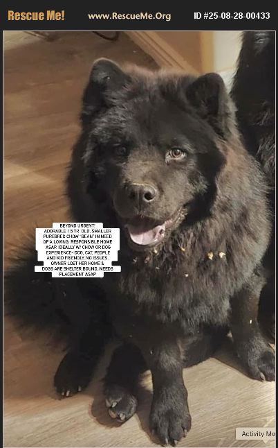 Courtesy Posting: BEYOND URGENT- HUMBOLDT, AZ (between PHOENIX AND FLAGSTAFF)- ADORABLE 1.5 YR old, smaller PUREBRED CHOW 'BEAN' IN NEED OF A LOVING, RESPONSIBLE HOME ASAP, IDEALLY W/ CHOW OR DOG EXPERIENCE- DOG, CAT, PEOPLE and KID FRIENDLY, NO ISSUES. OWNER LOST HER HOME AND DOGS ARE SHELTER BOUND, NEEDS PLACEMENT ASAP Please help us find a loving, responsible home (or foster, if you are local) for Bean who lived with his owner since he was born, and is now approximately 1.5 years old. Bean's mother is a purebred chow who got out and mated with a purebred male chow. The owner has since spayed the mom, but the owner lost her home and the dogs are only at a temporary place outside in this extreme heat, and could be shelter bound soon, along with several other chows from the same home. Bean's owner tells us 'He is great with other people, dogs, cats and children. He is potty trained and lives outdoor during the day and indoors at night. He also 'has never bitten anything or anyone. He broke his leg 6 months ago and has pins in his right rear leg.' As a condition of his adoption, Bean must be brought current on vaccinations and neutered a condition of his adoption (we have a sponsor for this if done locally at SNIP). If you are interested in meeting and adopting sweet Bean, or may consider fostering him for the owner or a local rescue, please contact [email protected] or Southern California Chow Chow Rescue Network asap who is assisting the owner with his and the other dogs' placements. We have separate posts up for the other chows who may be adopted separately. Chow or dog experience is preferred. While Bean has done well with other pets, if you have another dog or pet, a meet and greet is strongly recommended. We will be posting more pictures and videos of Bean on facebook at: https://www.facebook.com/debbie.alder.14/posts/pfbid0k6TZ2TkPT71DkgJXDXrZiBUm4vX3kENMFcoSN1t8xJWr1kQBgzJ2dMsYeDxRGgNbl Note: to view contents of link you will need to copy and paste it into your browser.