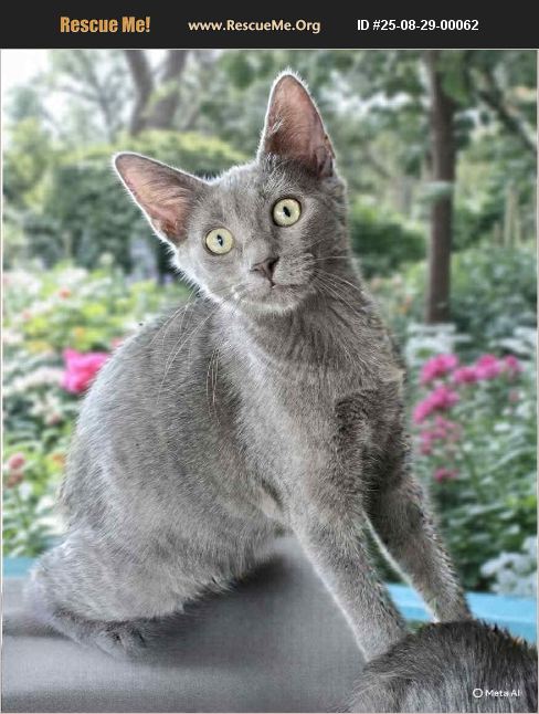 This sweet male Russian Blue was orphaned on the street and recently saved. He is currently inside and waiting a loving forever home.