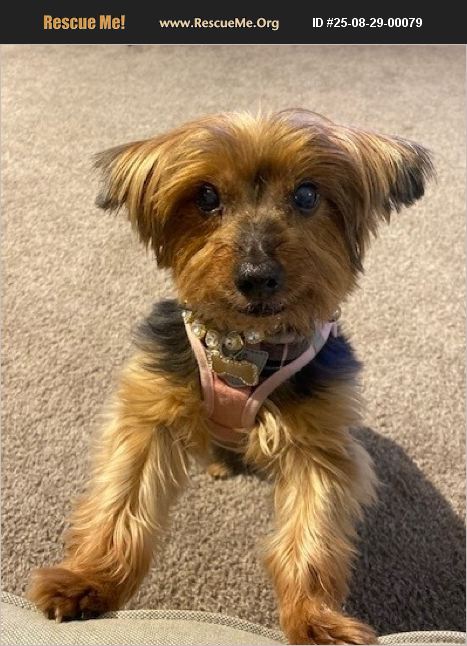 Bella is a sweet 13-year-old Yorkie with a calm temperament, perfect for a peaceful home. She's fully house-trained and communicates her needs with soft barks when she wants to go out or get your attention. Bella enjoys belly rubs but prefers her own space-she's not much of a cuddler and tends to relax quietly on the couch or in her favorite resting spots. She has mild resource guarding behaviors around human food and her chosen spaces, so someone familiar with senior dogs and respectful of boundaries would be a great fit. We're looking to rehome Bella as our lifestyle is shifting-we'd like to travel more, and the responsibility of pet care just isn't the best fit for us right now. Bella does well in an apartment setting and adapts easily to a consistent routine. She's a loyal, low-maintenance companion who would thrive with someone who values calm, predictable days and a little dog with a big personality.