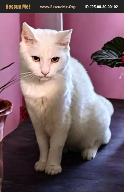 Snowie is a serene and affectionate 4-year-old female cat with a soft, downy white coat that's as pure as her sweet nature. She loves back scratches and having her gorgeous coat brushed. Snowie has these golden-colored eyes that are simply captivating and will melt your heart. She may be quiet, but she speaks volumes with her loving purrs and gentle presence. Snowie adores attention and will happily curl up with you for quiet companionship. While she enjoys the company of humans, Snowie prefers to be the only pet in the home, where she can receive all the love and attention to herself. Snowie is not a big fan of other cats or dogs and will let them know firmly if they get too close. She's the perfect companion for a mature individual or anyone seeking a peaceful, low-maintenance pet. If you're in search of a loyal, calm, and affectionate feline, Snowie might be your perfect match!