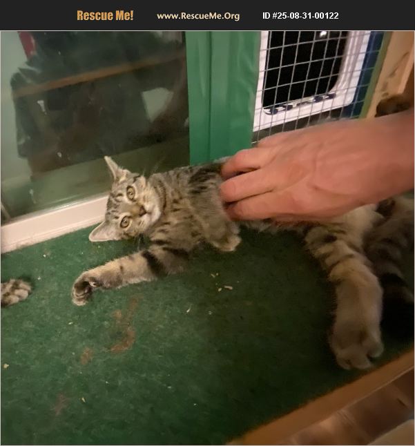 Neighbors and I rescued three kittens. This is Cookie. They are all sweet, friendly if sometimes shy, and very good at purring. Litter box trained. Cookie is a shorter haired grey tabby. He has deep yellow eyes, likes to wrestle, and loves to chase the Cat Dancer toy. He is such a purrball, he purrs when I'm putting his donut back on. Voted most likely to let you know it's his turn for attention, either with a soft meow or a tap on the arm. He has been neutered, treated for fleas and worms, and had his first rabies and FVRCP vaccines. Litter box trained.
