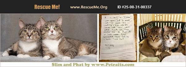 Phat and Slim are three-year-old, shy and sweet, brother patch tabby cats looking for a loving guardian. Phat is 11 pounds and Slim is 9 pounds. These boys were abandoned by their human when he moved from their apartment. He left them in their carrier full of food and water in the hot July sun. A neighbor saw him and asked him to bring them indoors which was a bit cooler. She reached out to the local fire department, who in turn reached out to me for help. The boys who had never seen a vet before, but are now very healthy, neutered, dewormed, vaccinated for rabies and distemper, microchipped, and virus-tested negative. Phat and Slim adore each other and sometimes play fight as brothers do. They are looking for someone with room in their heart and home for two fun felines. They are wonderful in the home. They use their litter box and scratching post like good boys. They just need a family to share their life with. To meet and possibly adopt Phat and Slim, please fill out an adoption application https://friendsofpetraits.com/cat-adoption-application/ After the application is complete, please contact [email protected] to schedule an appointment to meet them. Their adoption fee of $175 as a pair benefits the Friends of Petraits Rescue. They are currently being fostered in Chicago.