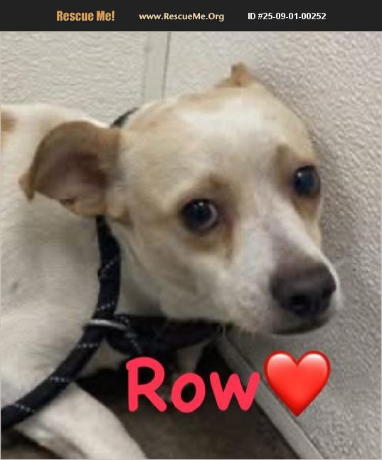 Please help me live! The shelter has given me a deadline I have done nothing wrong so I hope you can commit to FOSTER me before my deadline! Located in Phoenix Arizona Please apply here Call or text 602-834-4911 or submit app Dogfoster.org He is a 1y White/Tan Chihuahua and weighs 18 lbs. He was found with two friends on 8/20. Row is a terrified puppy that hides and buries his head so that he is invisible. He allows handling and seems to enjoy being carried. He settles down and relaxes when he is being carried. He is easy to leash and transition from the kennel to the play yard. He has not shown any aggression he is just a terrified puppy. Poor Row needs a gentle, loving, safe foster so he can be