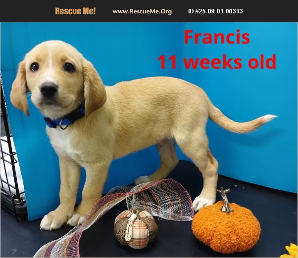 Francis is a handsome 11 week old boy! He appears to be a Beagle/ Vizsla (mom appears mostly Vizsla)/ Lab mix. He is a happy, go lucky, energetic, goofball! We are teaching him manners and he has come so far since arriving! Francis is good with kids, dogs and cats. He is neutered, vaccinated, dewormed, microchipped, and heartworm negative! His adoption fee is $350.