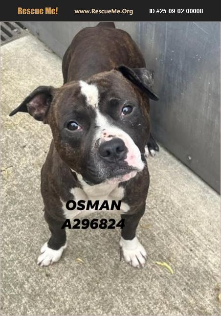 OSMAN's head tilt is asking why. He's wondering why he is still in this loud over-crowded shelter? Why has no one come and picked him yet? Why has his forever family not found him yet? He has GREAT leash tests with several other dogs so doggie siblings are a good possibility! All very good questions. Why has OSMAN been at CACC since July 6th with no one picking him to take him home. HIS TIME IS RUNNING OUT and unless someone comes for him soon, his story will END at CACC! Osman has that square body shape that's only cute on four legs. He's not only devastatingly handsome, he's just as nice. Osman is a go with the flow kind of dog, and he wants to always be doing exactly what you are doing! Walking, playing, cuddling...whatever you are doing, OSMAN is right there with you! Isn't it time for you to go and meet him and fall in love with your new BFF. OSMAN thinks it is. Every day between 12-6pm. Adoptions take place 7 days a week, and OSMAN's adoption fees are waived! DON'T DELAY....TODAY COULD BE HIS LAST DAY! OSMAN (A296824)