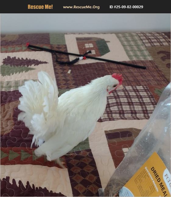 White Serama cockerel, 13 weeks old, loves being coddled. Hatched at home, but can't have roosters.