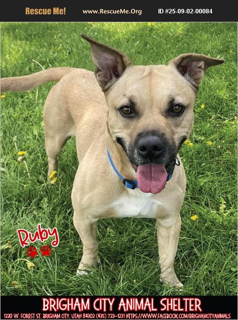 Ruby is a 4-year-old Pit Mix who was surrendered when her family moved and couldn't take her along. She's now waiting for her second chance at a forever home. Ruby's Details: Spayed female Adoption fee $40 Current on vaccines Housetrained Crate-trained Lived with kids (ages 4+) Good with medium-sized dogs Knows basic commands Medium energy-playful but also enjoys relaxing Ruby is a sweet, well-mannered girl who will fit right into a loving home. She's smart, loyal, and eager to please, everything you could want in a best friend. All adoptions are upon approval of the adoption application only Brigham City Animal Shelter Hours: Tues-Fri 12-6pm Address: 1220 W Forest St, Brigham City, UT 84302 Phone: (435) 723-1231 Facebook: https://www.facebook.com/brighamcityanimals