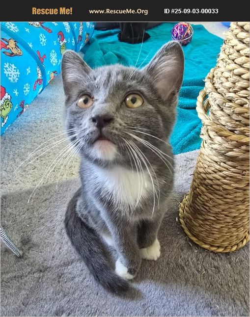 Romeo is the sweetest little dude and really lives up to his name. His favorite pastimes include being his foster mom's shadow, flopping over and requesting pets and belly rubs the moment you stop moving, wrestling his siblings, and wearing himself out chasing wand toys. He's got a heck of a motor and you'll be sure to hear it the moment you start loving on him. When he's feeling really affectionate, he'll even boop your nose with his. He's made fast friends with his foster parents' adult cats and has yet to meet a person he doesn't like. If you're looking a sweet, cuddly kitten, Romeo may just be the furry little man for you! To meet Romeo and other adoptable Purr Partners kitties at one of our weekend adoptathon events, 1) review our adoption policies at https://www.purrpartners.org/adopt/policies/ and 2) then apply to become a pre-approved adopter at https://www.purrpartners.org/adopt/cats/