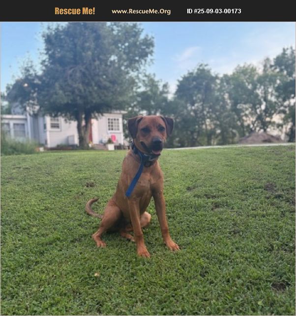 Quest is approx. 9 months old and thought to be a Black Mouth Cur, possibly with Lab and/or Rhodesian Ridgeback mix. He has lived with our family since March 2025 and while we very much want to keep him, we have learned that he is unable to live with our other dog, a 15 year old Rat Terrier. Quest is an amazing dog and would bring joy to someone's life as an only dog. He is a very loving, intelligent and obedient dog with an entertaining and goofy personality. He is motivated both by food/treats and affection and is eager to learn and please. He is potty, crate and leash trained and has learned sit, lay down, stay (including to wait for 'ok' command to come to his food dish and enter the house) and is working on drop it, leave it and come. He loves to take walks and run around outside, or follow his humans around as they work and play outside. When inside, he is calm and often naps or lays by your feet. We've taught him to stay down off the counters and people (including strangers/guests) and only go onto the couch when asked. He's been socialized around others with trips to the gas station, stores and school pick up. He becomes alert when he hears a knock at the door, but rarely barks and will often 'talk' to you with soft noises when he needs to go out or wants affection. He gets along well with our three cats and show great affection and calmness with our three kids (ages 6, 8, 10). He has, however, shown food guarding/aggression around food toward our older and smaller dog and for this reason we are rehoming him to a household where he can be happy and safe as the only dog in the house. We may be able to explore the possibility of an experienced dog owner with another dog of similar age and size. We found Quest wandering on our dirt road where we live on the edge of Omaha (Ponca Hills); he was skinny but otherwise healthy and quickly trusted and opened up to us. We did an extensive search to find an owner, but no one came forward. He initially got along well with our Rat Terrier, but there have been a few isolated incidents over the summer. He has never shown any other signs of or aggressive behavior toward adults, kids, cats and other dogs he's visited and stayed with while we were out of town. We've consulted with NHS's behavioral help line and they said it's likely limited toward other dogs and due to experiencing food scarcity at a young age (before we found him). They said it could be specific to our other dog or the fact that he is smaller and older, and he could train or outgrow it. He's fully vaccinated, chipped and neutered (at 7 months). When outside with someone he stays close and does not have a desire to run away; he's been trained on a GPS invisible fence collar, but needs some additional training as he sometimes ventures past the boundary into the woods if bored and wanting to explore. He's about 50-60 lbs and since he's under a year old, probably has a bit more to grow (vet estimates 65-75 lbs full grown). I'm happy to share more about him and arrange a meet & greet if you think Quest could be a fit for you! *fee is to ensure a safe home