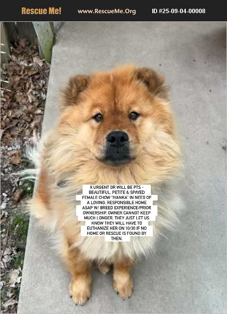 Courtesy Posting: X URGENT- FENTON, MICHIGAN (NR/N of ANN ARBOR)- BEAUTIFUL, PETITE AND SPAYED FEMALE CHOW 'IVANKA' IN NEED OF A LOVING, RESPONSIBLE HOME ASAP W/ BREED EXPERIENCE/PRIOR OWNERSHIP, owner cannot keep much longer. Please help us find a loving, chow savvy home for adorable Ivanka, an approximate 3.75 yr, 42 lb chow girl so she is perfectly sized. We were contacted to assist with her placement due to this urgent situation as the dogs in this home are not getting along, in addition to a grandbaby now living in the home who is allergic. The owner reports, 'Ivanka is an affectionate dog and listens better than our other chow. Ivanka loves belly rubs! She has a large fenced in back yard she plays in. She loves it outside! She is fully potty trained. I have worked with a trainer for 5-6 classes. Since the baby came I honestly have not had the time to work with Ivanka. She will sit, doesn't jump on me and requires a special lead I bought if you want to go on a walk. Ivanka pretty much likes to eat, sleep and watch TV when inside. I have the house gated for the baby and prior to this Ivanka would follow me around the house. Ivanka has no problem with me taking food away from her or giving her food. Ivanka is allergic to chicken and I give her Allergy Relief immune chews that I buy on Amazon. She is fed Natural Balance Limited Ingredients Salmon and sweet potato dry dog food. For treats she's given sweet potato. We give her Greenies for dental health. She saw the vet, Dr Chris, in April and was given a clean bill of health. She will be 4 years in December. Ivanka does well with the female groomer. The other groomers seem afraid of her but Layla has not had issues. Our vet has seen Ivanka several times and only recently has muzzled Ivanka after being bitten in the face by a dog he was seeing (not Ivanka). We are an all female household. I believe Ivanka would do best in a female home, with no young children and no other pets. Ivanka is crate trained for when we are gone for a long day trip. She does fine.' The owner provided nice video of Ivanka enjoying being pet and showing she has no food resource guarding with her. However, the owner further explained the main reasons for rehoming is that, 'My granddaughter and daughter live with me and the baby is allergic to dogs. More importantly Ivanka is unpredictable. She'll be great with the shih-tzu for a period of time and then will pin her to the floor for unknown reasons. Further when we purchased Ivanka we also bought her sister Lydia. About two years ago, out of the blue, Ivanka would start fights with her sister. We now have to keep them separate. Ivanka is food aggressive so all three dogs have been fed separately for years now.' Additionally, while the owner reports no bites to humans, she said Ivanka has gone after cats and other critters in the yard and seems to have a strong prey drive towards them as she has killed some. Ivanka rarely ever takes walks, but it is recommended she use a basket muzzle and a martingale collar when on such. If you are breed savvy and are interested in meeting and adopting Ivanka, please contact [email protected] or Southern California Chow Chow Rescue Network who is trying to assist with her placement. All adopters will be asked for a home check (which may be virtual), an application, a vet reference, proof of prior chows, and a signed adoption contract. A $100 rehoming fee is requested. We will be posting more pictures and some adorable videos on facebook at: https://www.facebook.com/debbie.alder.14/posts/pfbid052F3vnMua3tAoBinZRUeQrG6cyjHn4VKUM2ZhT1svpJJBWfQVunhfji45HKRwc6vl To view contents of link you will need to copy and paste it into your browser.