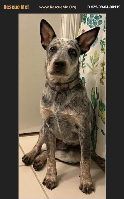 Bluey is a six month old Australian Cattle Dog. He's true to his breed and is active, and wants to be in charge. He's working hard on learning all the ins and outs of being a house dog. He lived the first six months as an out door dog but is doing well at crate training and house training. Bluey loves loves loves to play and can be a bit pushy when asking his doggy friends to play ( he's a bit much for the senior dogs in his foster home) so he could use a high energy ready to play doggy friend in his new home. Bluey is working on basic commands and learning to walk on leash but needs some practice and could benefit from some basic obedience. He's doing well with children in his foster home. He can still do puppy things like chew on things he shouldn't so he will need lots of doggy appropriate toys and some extra supervision until he learns. We don't recommend him with small critters or chickens. He doesn't understand they aren't his playmates or toys. Bluey is neutered, vaccinated, microchipped, dewormed, heartworm and tick disease tested and on preventatives.