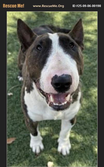 August has now been urgent listed and is on borrowed time!!!! This adorable guy is located in a high kill shelter in Castaic, California. The LA shelters are in severe overcrowding conditions and are euthanizing young healthy dogs at an alarming rate!!!! transportation information is available. Video: https://fb.watch/BYiuN2w334/?mibextid=wwXIfr&fs=e Saugus, #A5713229, is a 2 year old, 49 pound Bull Terrier who arrived as a stray. He would love to be your summertime boyfriend forever! He has not yet been assessed with other dogs. Saugus is working on manners, obedience and leash skills. He would thrive with a family who will continue his training and give him lots of treats and pets!