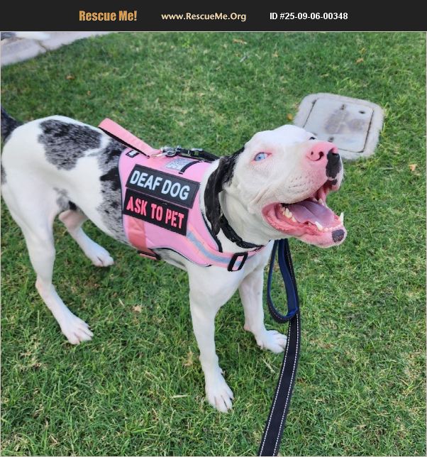 Yoo-Hoo is a young catahoula leopard dog, pure bred based on our embark test. We originally found her at a shelter where she arrived extremely malnourished and stayed 2.5 months before we adopted her. We currently have 3 other dogs and two cats, and believe she may be better suited for someone who can provide her more exercise and enrichment. She is okay with both dogs and cats, but will need to be slowly introduced with any other dogs in the home. Her deafness brings some challenges, and the tends to get frightened easily. Once she trusts the other dog, she is much more relaxed. A home without young children will be best. Any people interacting with her need to know she is deaf, and know not to sneak up on her. A house with a yard and the ability to spend time with her throughout the day is needed. Her energy levels are extremely high and she is very intelligent. She is crate trained and knows some basic commands. We are working with hand signals for sit, down, wait, and come, and we have positively conditioned her with a vibration collar for recall. She is an absolutely wonderful dog. Extremely goofy and expressive, loves to play and loves attention. If you have the time, caring for her is extremely rewarding. Rehoming her is not urgent, but we know we cannot provide all of the time and enrichment she needs. We are hoping to find someone committed to providing for all of her needs. If there are other dogs in the home, a meet and greet would be required. Please reach out with any questions you have!