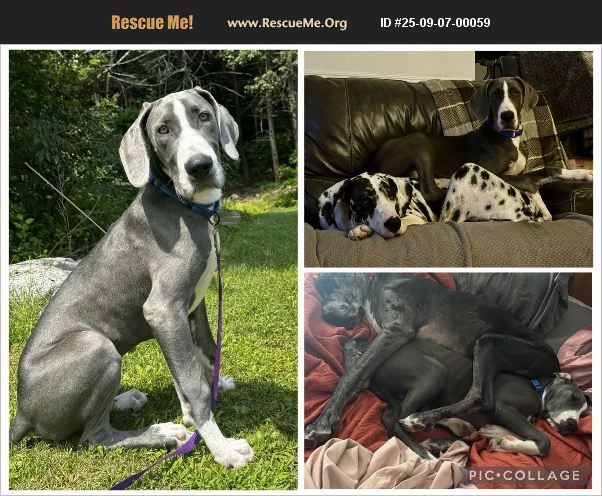 Sailor. 5-month-old male Great Dane puppy. UTD on age-appropriate vet care, vaccines & preventatives. Loves other dogs and enjoys playing and snuggling with them so he is seeking a home with atleast one other canine companion. Good with dog-savvy cats. Kids 8+ yrs old. Will need continued work on housebreaking, crate training, manners & basic obedience. Due to disturbance concerns, LFAR does not place puppies in apartments, townhomes, or homes with shared walls. Physically fenced yard REQUIRED. Giant breed experience REQUIRED. Location Winchester VA. We adopt NATIONWIDE Sailor In search of: loving patient family. I am your typical Sailor�'�| I am very handsome, with striking blue eyes and smoldering smoke fur. The white on my chest looks like I have a suave suit on. I love the ladies but I don't mind hanging out with the men. I am very shy and nervous about most things and it will take a patient family to give me the time to decompress and learn the world isn't a scary place. My foster mom has been working on my confidence, leash walking and potty training. I have mastered crate training, and playing with my foster pups. I am very submissive when I am playing with the Danes, they are so big but they make great snuggle buddies! I am in love with the itty bitty pitty in the home. I let the resident cats rub up on me and sleep by me. I've been introduced to small children and so far I am very patient with them. Sailor is UTD on age appropriate vet care, vaccines, preventatives and is microchipped. He is currently in a foster home in Winchester VA.�%A0 We adopt NATIONWIDE but require adopters to travel to the foster home with their current dog/dogs (to ensure they will be friends) to pick up.�%A0 Out of respect for our foster family's time and privacy, we do NOT arrange meet and greets without an approved application on file.�%A0 If you're interested in adopting Sailor, you can view our requirements, age based adoption fees and fill out an adoption application at https://www.luckyfarmsrescue.org/adoption