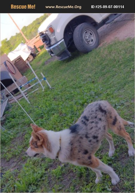 Blue Mearle with Brown and White markings with 1 Blue eye