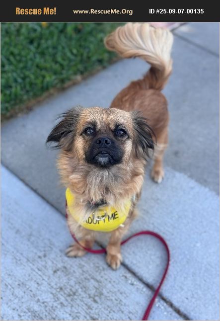 Adorable little Izzy is looking for a home in Orange County, California ONLY! She is estimated to be about 1 year old, weighs 12lbs, and has the cutest underbite. We think she might be a Tibetan Spaniel or Pekingese or Pug mix of some sort, but we don't know for sure! She ended up at the shelter as a stray before we rescued her, so her background is a mystery. So far, Izzy is a very sweet but pretty shy girl at first. As soon as you give her a treat, she will be your new best friend! She's doing well in foster care and is learning basic commands (sit, down, and come). She's very food motivated! She has yet to have a potty accident in the house, and she gets along well with the other dogs in her foster home. She sleeps through the night in her crate as long as someone is nearby (she does not like to be left alone in her crate). We have also cat tested her, and she is good with cats! She is an expressive little gal! She likes to 'talk' and tell you what's on her mind, and it's quite cute! She will squeak at you if you are eating something she'd like you to share. Izzy isn't a fan of barking dogs and can get overwhelmed quickly when barking is going on. She can also get a little nervous in new environments, so slow and steady will win the race with her. We think she would do well in a home with older, respectful, calm kids. She'd also prefer to have a family who is around most of the time (folks who work from home or who are retired would be her ideal match). So far, she is very Velcro and wants to be with her trusted people! She can be left alone for a couple of hours but she definitely prefers to have people around. If you are interested in adopting Izzy, please fill out an adoption application on our website! Someone is going to be really lucky to make this angel part of their family.
