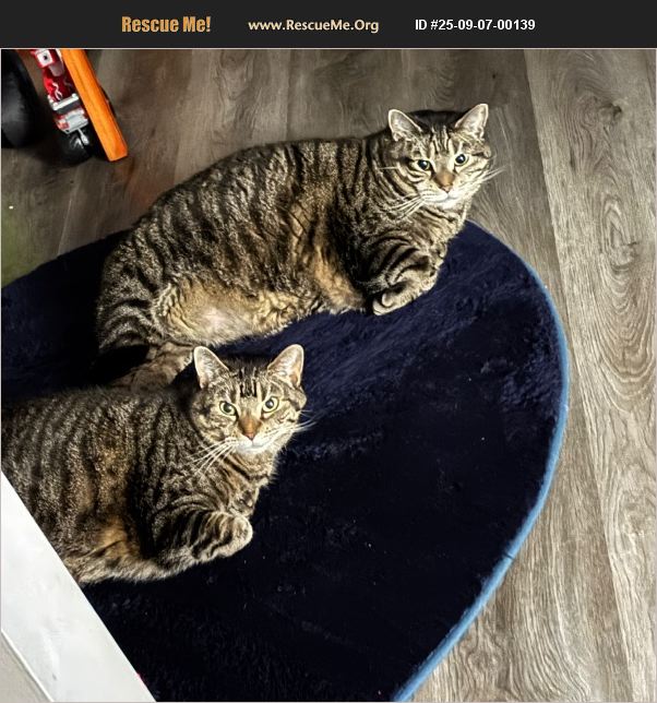 These two brothers have been together since they were adopted in 2017 and can not be separated. They are indoor cats that love affection. They are good with kids, cats and dogs.