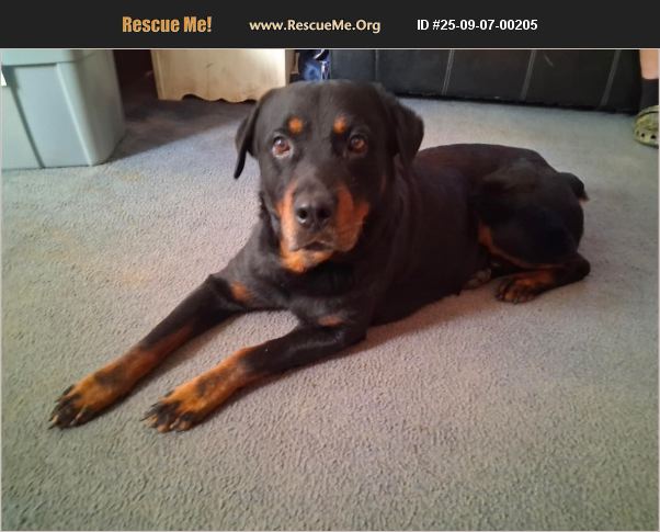 Buddy is looking for his fur-ever home. He is a Rottweiler. We aren't sure his exact age as he was rescued from an abandoned house but we're guessing around 5 yrs old. We gave him his shots except rabies. He is not fixed. Fully house broken and know most commands. He is a gentle giant and is great with other animals EXCEPT cats. He has been around all ages of children and has done great. He can be an inside dog or outside as he is used to both. He is also crate trained. We have too many rescue animals right now and its getting overwhelming. We don't have the money to continue vet bills and / or to get him fixed before rehoming him. There is a rehoming fee located in Tyro