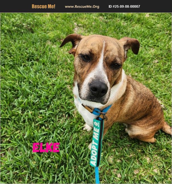 Elke is a very sweet and loyal girl. She loves people and is good with dogs and cats. She had a rough start, found on the side of the road with her littermates in Caldwell Texas. She had a fractured hip but a surgeon repaired it and she is as good as new. She loves to play, have belly rubs and be around people.