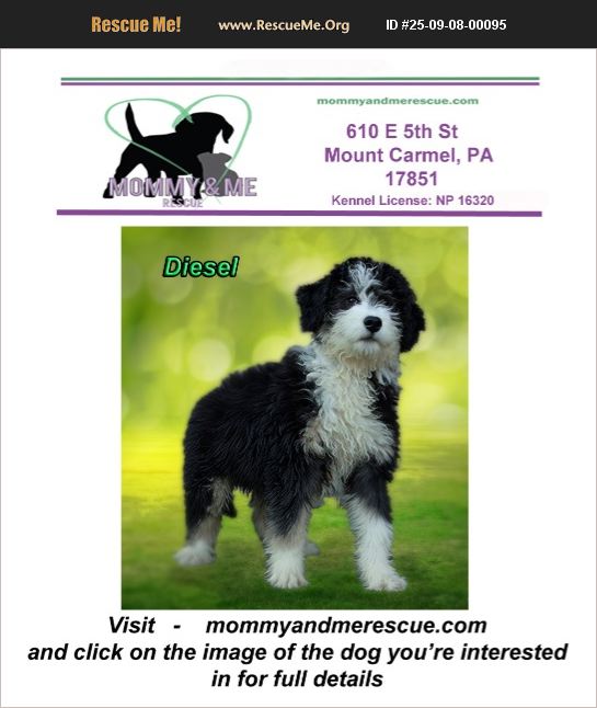 Please fill out an application here ) https://mommyandmerescue.com/adoption-application/ and give your vet clinic permission to speak with us. Spayed/Neutered, UTD on vaccines, Chipped Adoption fee 400 You must submit the application and be approved prior to meeting one of our dogs. Please add our EMAIL to your contacts! [email protected] Kennel License: NP 16320 Mini Bernadoodle DOB: 6-7-25 Male Adult weight: 35-50 pounds This beautiful little boy was surrendered with his siblings when they didn't sell fast enough for the breeder. He is a typical puppy just learning about life. He loves people, playing and other dogs. Would be fine with kids and cats. Not house-trained yet but eager to learn and very smart. Does NOT shed.