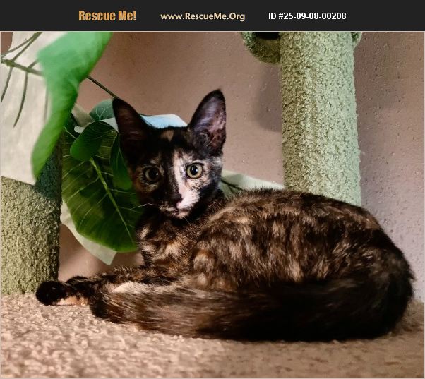 Lydia showed up with her mom in the shed behind my workplace this summer. I brought them home with me on 7/20/25 in order to get them ready to be adopted. She is smart, adventurous, clever, brave, curious, affectionate, and playful. She loves every toy she sees. She often stands on her back legs and reaches out for toys with her front legs. She also loves climbing cat trees and sleeping in hammocks. She is super-social, loves being petted, and is a purr machine. Lydia is about 17 weeks old as of 9/8/25. She has received 3 rounds of FVRCP vaccine, 2 rounds of FeLV vaccine, a Rabies vaccine, and is FIV negative. She has also been spayed and microchipped. She is receiving monthly topical flea prevention. She's been very easygoing with oral medications and nail trims. She gets along well with my other resident cats. She can be adopted on her own or with her mama Savvy (also has an adoption profile).