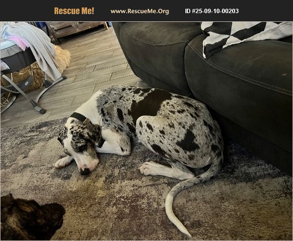 Zeus is a 2 year old Great Dane. He is house trained, crate trained, good on leash and loves car rides. He currently lives in a home with a bull mastiff, a cat, and 4 kids under age 8. He knows several commands and is an overall great dog. He does have some allergies to Bermuda grass which have been under control with Zyrtec.