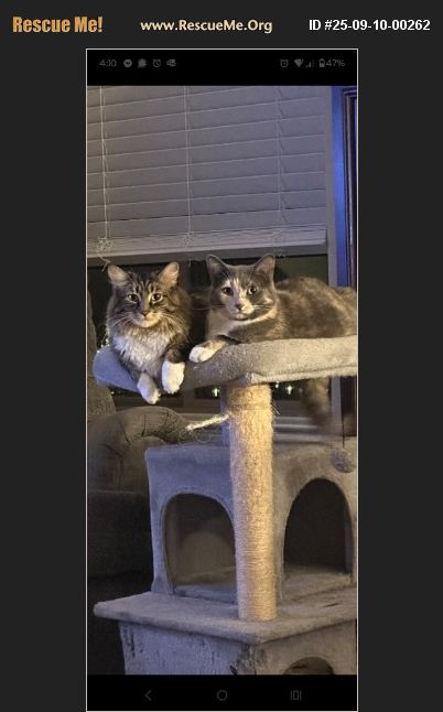 2 cats, brother and sister. They have been spayed and neutered. They were born during covid, the boy is on the left and the girl is on the right. They eat wet and dry food. They are indoor only cats.