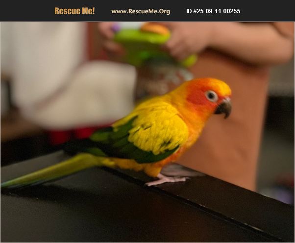 This is my Sun Conure she a great bird haven't had any problems with her I just don't have the time for her anymore. She great with kids I have a 3 and 5 year old and she does great with them she doesn't bite only when you make her mad but we have not had that problem with her. She loves taking baths she will go up to the sink or bath tub to take a bath she loves eating different foods she will go up to our plates to get food but have to be careful she will go up to the stove to get food as well. She hardly ever locked up in her cage. She is loud so I hope to fine a great home for her where someone that has experience with Sun Conure. Please make sure you look at the rehoming fee before sending me a message thank you.