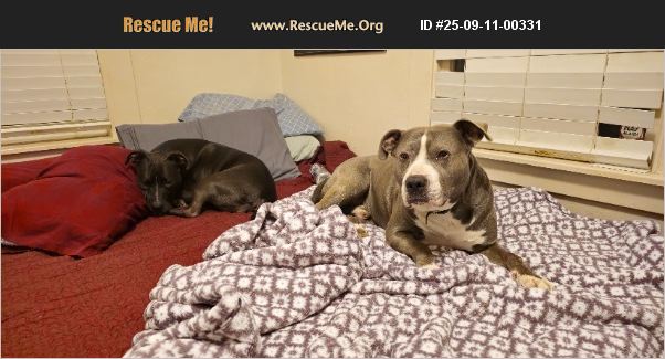 The grey dog on the right is Harley. He has lived with the female pitbull on the left for the last 3-4 years. He overall does well with her. He is sweet, wants to always be petted and snuggled, but in gentle ways. He is protective. No small animals and may do best being a single animal household. Walks well on a leash.