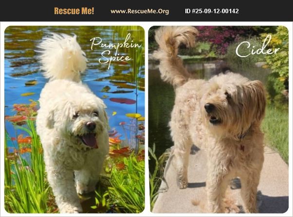 Bonded Pair: Cider is a Poodle/Maltese/Terrier blend. He's been in our care along with his best friend, Pumpkin Spice. Cider is on the medium size, he currently weighs 32 lbs. He's adorable, gets along with other dogs, but aren't sure how he does with cats, but easy to check. This sweet boy is waiting patiently for the perfect parents that will love him unconditionally. Fill your life with cuteness and love- apply for them today!