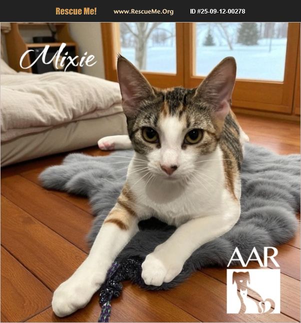 Mixie is a beautiful calico kitten with a shy side. She may need a little extra time to feel safe, but her gentle nature makes her worth the wait. Once she blossoms, you'll discover a loyal and loving kitty with a sweet personality. Mixie is perfect for someone patient and kind who wants to help her confidence grow through play and attention.