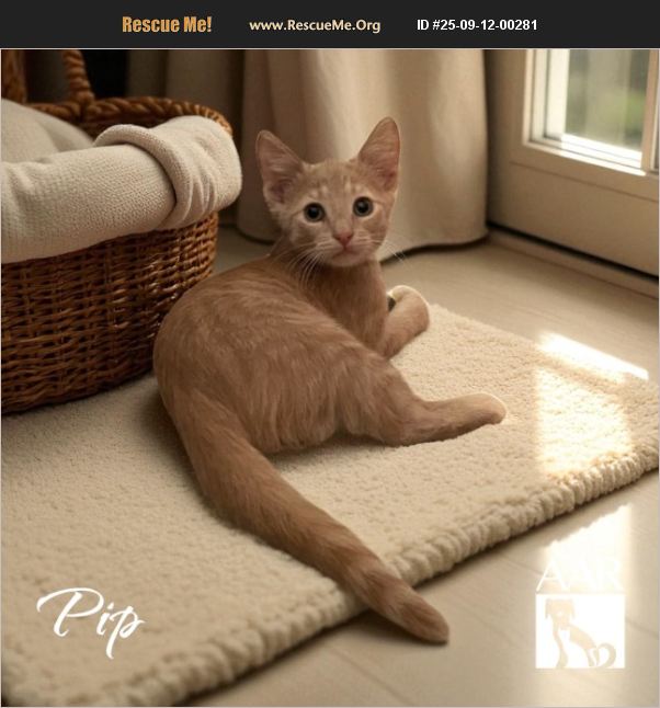 Pip is a beautiful kitten. He loves playing with string toys! Pip is shy and might do best in a quiet home but he got along well with his foster's own cats and in his new home would probably do will with another cat.