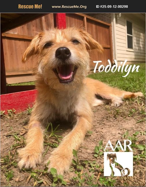 Toddilyn is a darling 18-pound terrier mix with just the right balance of spunk and sweetness. She's playful when it's time for fun, relaxed when it's time to chill, and always ready to be part of the action. Her rescuers shared that she was wonderful with the children and family dog in her foster home, and she's been nothing but friendly with every volunteer at the shelter. Whether she's romping around the yard, playing with her people, or curling up for snuggles, Todd's happy-go-lucky spirit shines through. Toddilyn may be small, but her personality is big enough to fill your heart. Come meet this little sweetheart-you'll see why everyone adores her! Est. DOB: 3/15/24 18 lbs AAR does not transport for adoption.