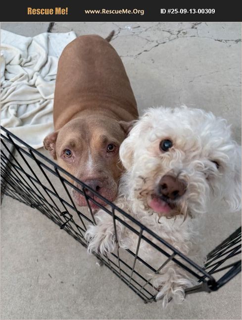 Small male maltipoo. White with apricot coloring. I have not seen him around kids, but he has been absolutely wonderful around adults. I've only seen him around one other dog and they get along perfectly well. He does well on walks, baths, and nail trims. No aggression detected, so my guess is he's good around kids and other dogs as well- I just haven't seen him in those situations. He was found with another dog and they seem to have already known each other well. He was checking on her and making sure she was with him with circle back for her before we took them home. If possible, I'd like them placed in a home together, but I would rather than be placed separately in good homes, then taken together to the shelter. Other dog: female staffy bull terrier. She has a growth on an involve, but it does not seem to be irritated or bother her in anyway. They are both gentle and seek affection.