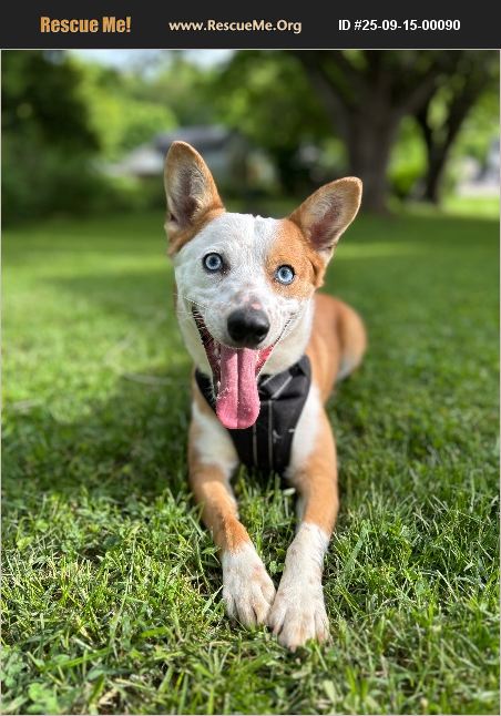 Fitz is a Cowboy Corgi, which means he's part corgi, part heeler, and completely goofball. He has a docked tail, big ears, and the happiest smile. Even though he's a mix of herding breeds, he doesn't nip at heels or try to herd kids. He is amazing at snagging frisbees out of the air and loves to chase down a ball. He always has the biggest smiles when he drops a toy at your feet and waits for the next throw. He plays hard, going all but when he's done he wastes no time heading back inside for a nap. He does great with the super chewer style toys but soft toys do not last. A Lambchop plushie hates to see him coming. His typical day starts with a morning walk and a few throws of the ball. After that he hangs out in the house with the cats. He might play chase with them but never in a mean way. One of our cats does not like him so he keeps his distance from her. He plays fetch inside with the kids, asks for belly rubs, or snoozes at your feet. When we are not home he stays in his crate with a chew toy. In the evenings he gets more playtime, maybe a trip to the creek, and plenty of big, goofy smiles. At night he crashes on the couch until his last walk before bed, then goes to sleep in his crate. Fitz is used to a busy house with kids, dogs, and cats. Our youngest is disabled so Fitz has experience around medical equipment and knows how to navigate around it and smaller children who are learning to walk. He was best friends with our older dog who passed away this spring. We would love to see him have another dog friend since he loves to play and wrestle. We live in a neighborhood with no fence so Fitz stays inside unless we are with him. A fenced yard or a rural area where he can run and fetch would be perfect. He is good on leash and off leash but recall still needs a little work. He has met neighbor dogs who have wandered into our yard, he has always stood his ground and returned to us with no aggression. Fitz knows sit and wait. He is very smart and responds well to treats during training. With consistent work he would pick up new commands quickly. He goes to the door if he needs to go outside and will bark from the crate if he needs to use th The only real issues we have seen is a little separation anxiety, which is much better when he has a dog companion and excitement around people. He loves everyone and gets very energetic when meeting new people or seeing someone he has not seen in a while. He has been know to excited pee if we do not take him out just before visitors arrive or have them greet him outside. And we are working on him not jumping up on people when they walk in the door. He just loves everyone. Health-wise he is doing great. He is still intact since we planned to wait until after his first year to have him neutered. He eats well, goes outside fine, but makes a mess drinking water with that long tongue. He occasionally gets a calming pill if he has not gotten enough outdoor time. Fitz is a fantastic dog who loves to play and be silly but with a major surgery coming up for our youngest child out of state and months of rehab ahead, we have made the hard decision to rehome him. He deserves a home and family who can match his energy and give him the stability and attention he thrives on.