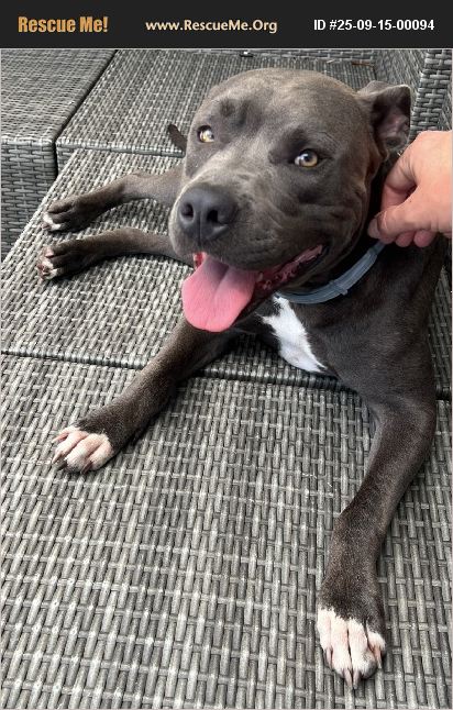 He showed up at his foster family's house on July 24th. He's extremely loving and goofy. It doesn't appear that his original family spent much time training him, so he will need someone who is ready to put in the work, but he's a quick learner. He's gentle with humans of all ages (his foster siblings are 5 and 7 years old and can attest!). He loves to play fetch and tug-of-war. He likes treats, cuddles, and playing all day. If they could, his foster family would 100% keep him because he's worth the effort, and he's ready for his forever home.