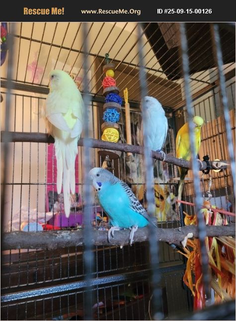 We have 4 parakeets that need a new home. From left to right in the picture. Mr. Peepers, Blue (male), Sky(female) and Eggs(female). They're approximately 3 years old. They can all go together or the males and females need to stay together. They're very sweet and talkative. They need a home that has more time and space for them. Please contact us for any questions you have. My daughter has had them since they were very young. Thank you.