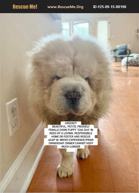 Courtesy Posting: URGENT- LONG BEACH, CA (S CAL)- BEAUTIFUL, PETITE, FRIENDLY FEMALE CHOW PUPPY 'CHA CHA' IN NEED OF A LOVING, RESPONSIBLE HOME or FOSTER AND RESCUE ASAP W/ BREED EXPERIENCE/PRIOR OWNERSHIP, owner cannot keep much longer! Please help us find a loving, chow savvy home for adorable Cha Cha, an approximate 10 month old, 38 lb chow girl expected to be approximately 45 lbs. We were contacted to assist with her placement, as well as her brother, Gus Gus, who may be adopted separately or together. The owner's friend left these puppies with them approximately 5 months ago, and they do not unfortunately have time for these dogs, nor the money to care for them. Both dogs need entropion surgery so we are looking for either an adopter who can take this on, or a foster or foster to adopt we can then refer to a rescue group to possibly help with medical. The owner reports, Cha cha is extremely loving and friendly. She is friendly with other children, strangers, and other dogs. She loves being around people. She has not been around cats before. She is very mellow and loves belly rubs. She has never even come close to biting anyone. She is extremely gentle and only gives kisses and snuggles. She is potty pad trained in the house.' The owner provided nice video of the two pups. Cha Cha is just being spayed and current on her vaccinations, but the vet advised to wait to do her entropion surgery when she is fully grown. If you are breed savvy and are interested in meeting and adopting Cha Cha, please contact [email protected] or Southern California Chow Chow Rescue Network who is trying to assist with her placement. All adopters will be asked for a home check (which may be virtual), an application, a vet reference, proof of prior chows, and a signed adoption contract. We will be posting more pictures and some adorable videos on facebook at: Cha Cha: https://www.facebook.com/debbie.alder.14/posts/pfbid0KQiwTttLqPyjtbAQufUiVhJA5ZGeLBCUh1MEbQkR279adW7gtUonq877J6aN3nL7l Gus Gus: https://www.facebook.com/debbie.alder.14/posts/pfbid0Yz8RV8XQNwEmhMvGSc4X1WHEkXArsaGSjfXFRVEzL9JRL1HeSJgAmXLzhxN7JxkYl Cha Cha & Gus Together: https://www.facebook.com/debbie.alder.14/posts/pfbid02sV1S89nH6C3keHjyVHyNMrG46qZDuQWNaMpSWxYZx2D7vHCLtp9hskSZkMzhaoMul NOTE: to view contents of links you will need to copy and paste each one separately into your browser.